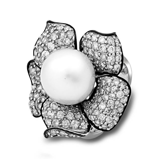 Кольцо из белого золота с бриллиантами и жемчугом (020361)