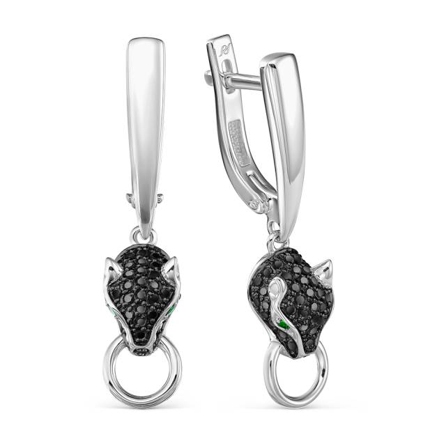 Серьги из белого золота с чёрными бриллиантами и изумрудами (060941)