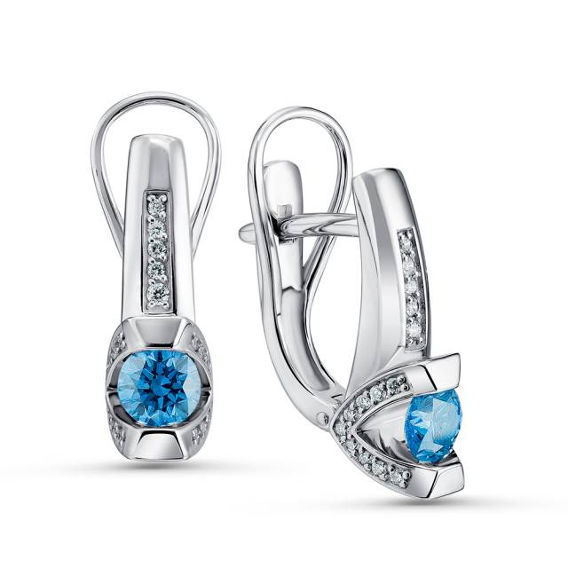 Серьги из белого золота с голубыми бриллиантами (051512)