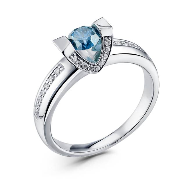 Помолвочное кольцо из белого золота с голубым бриллиантом (051511)