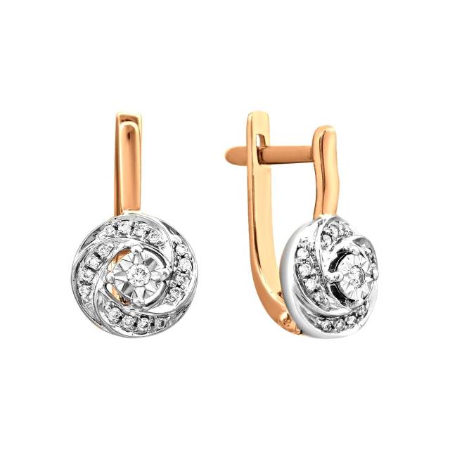 Серьги из красного золота с бриллиантами и рубином (025079)