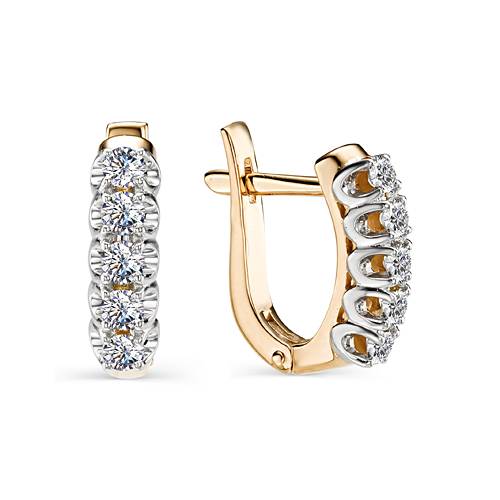 Серьги пусеты из комбинированного золота с бриллиантами (048347)