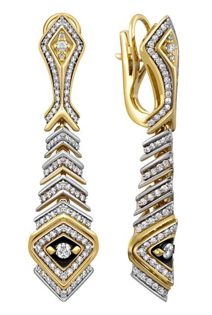 Серьги из комбинированного золота с бриллиантами и зелёными агатами (038773)