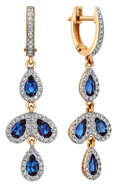 Серьги из жёлтого золота с бриллиантами и сапфирами (055794)