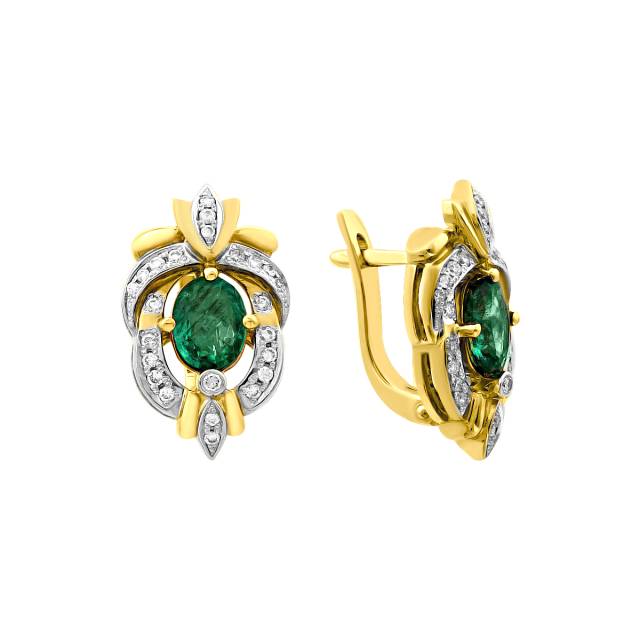 Серьги из комбинированного золота с бриллиантами и изумрудами (025828)
