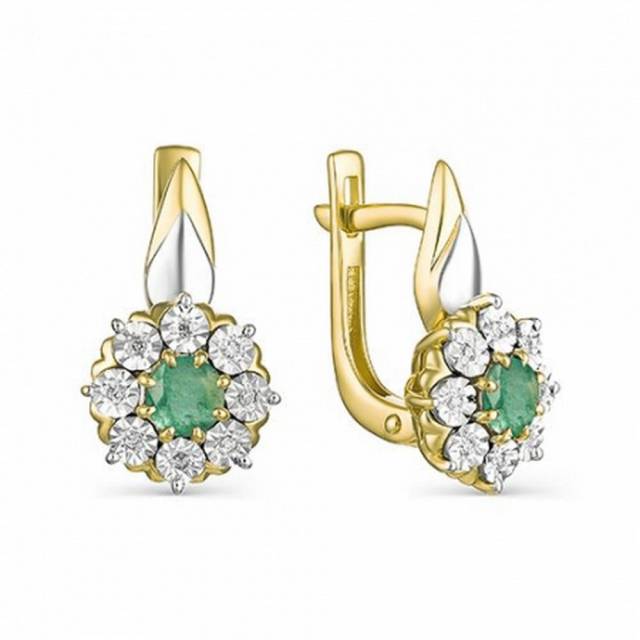 Серьги из комбинированного золота с бриллиантами и изумрудами (036199)