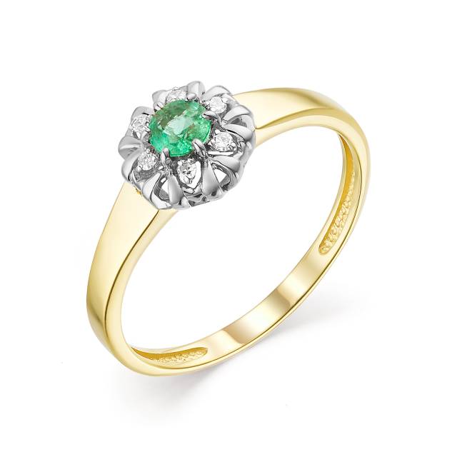 Кольцо из комбинированного золота с бриллиантами и изумрудом (042195)