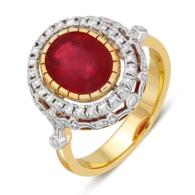 Кольцо из комбинированного золота с бриллиантами и рубином (039877)