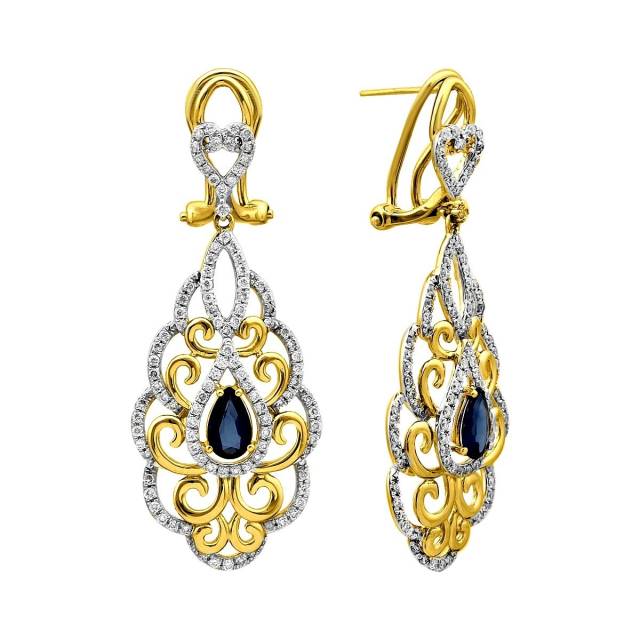 Серьги из комбинированного золота с бриллиантами и сапфирами (025938)