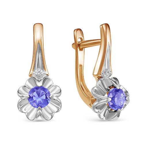 Серьги из комбинированного золота с бриллиантами и танзанитами (043829)