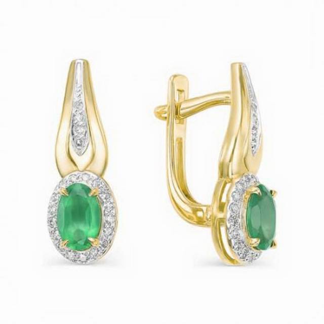 Серьги из комбинированного золота с бриллиантами и зелёными агатами (038773)