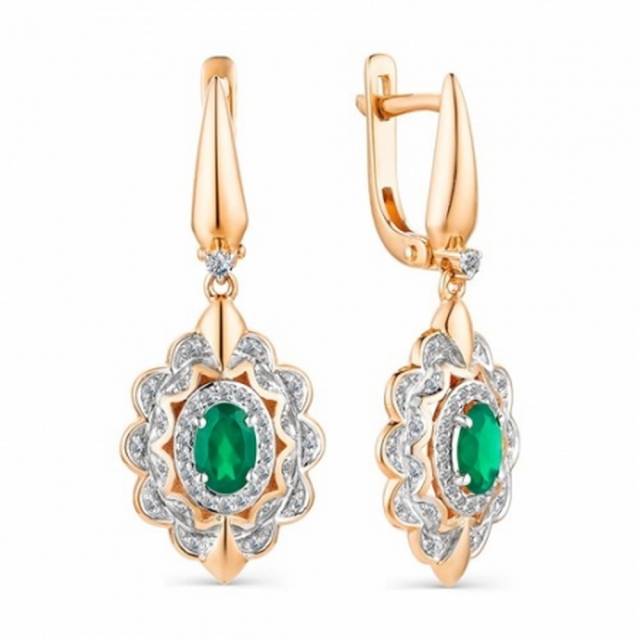 Серьги из комбинированного золота с бриллиантами и зелёными агатами (038782)