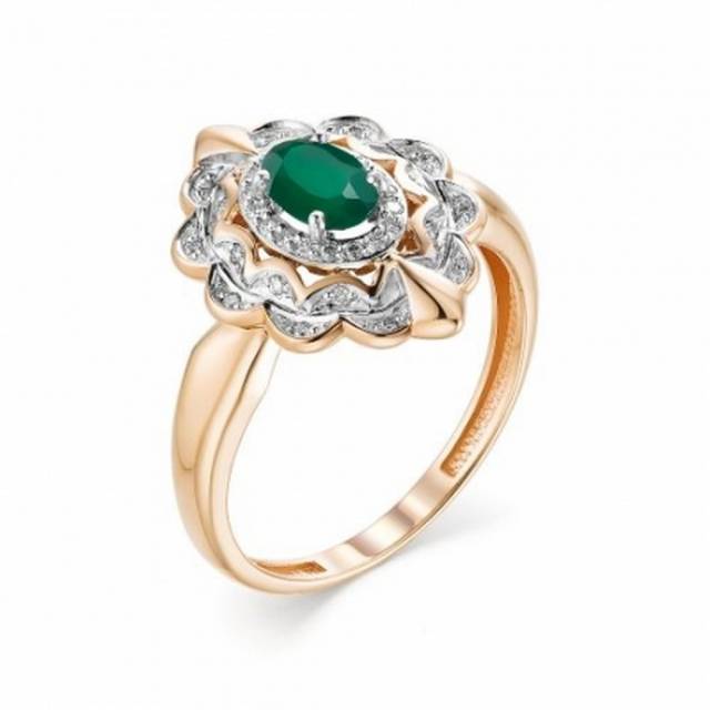 Кольцо из комбинированного золота с бриллиантами и зелёным агатом (038781)
