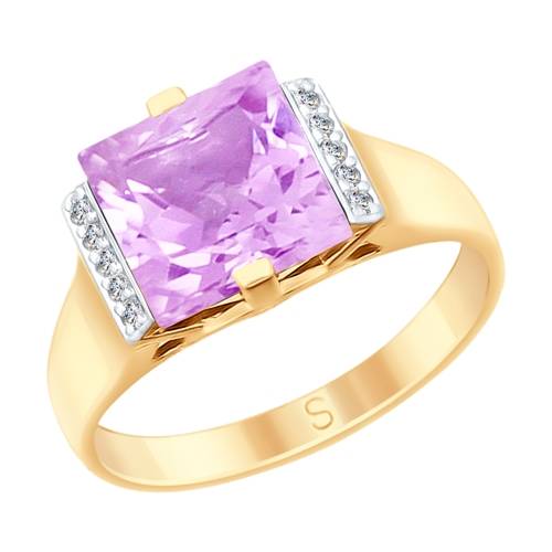 Кольцо из красного золота с аметистом и фианитами (038338)
