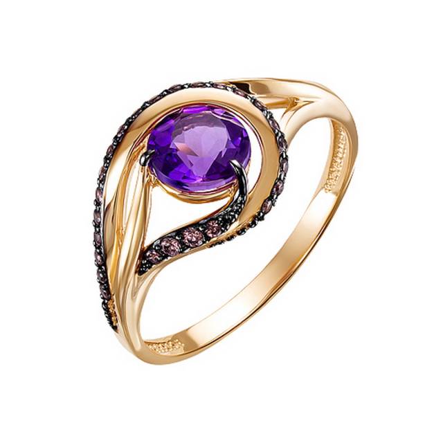 Кольцо из красного золота с аметистом и фианитами (040700)