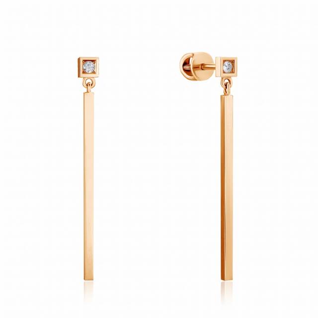 Серьги пусеты из красного золота с коньячными бриллиантами (058362)