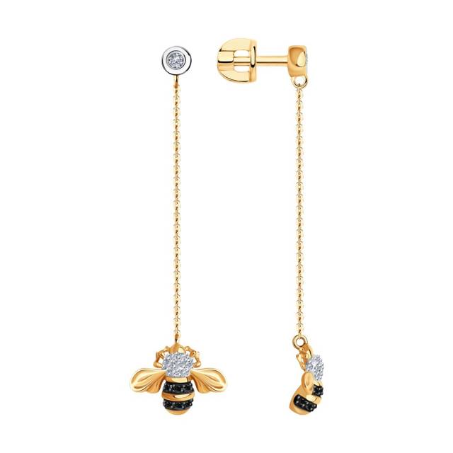 Серьги из жёлтого золота с бриллиантами и жемчугом Акойя (047682)