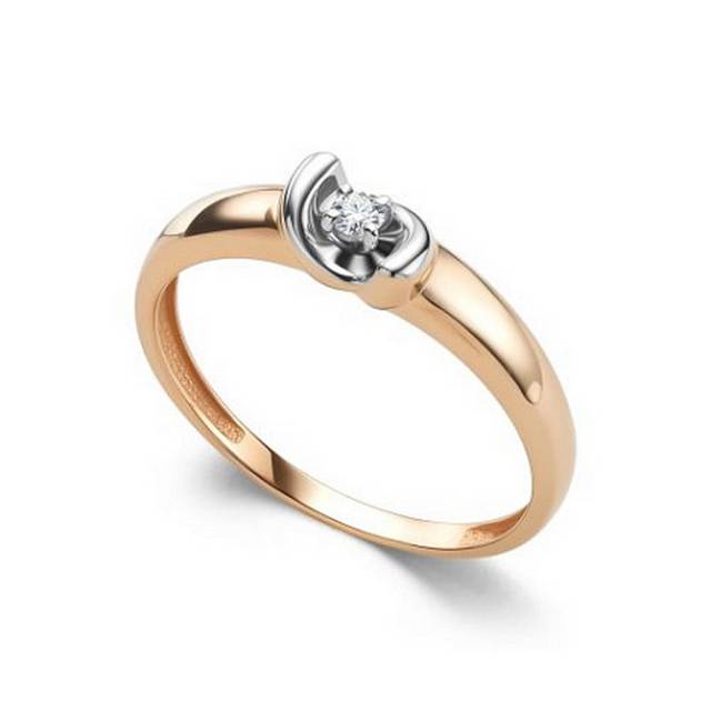 Помолвочное кольцо из красного золота с бриллиантом (061186)
