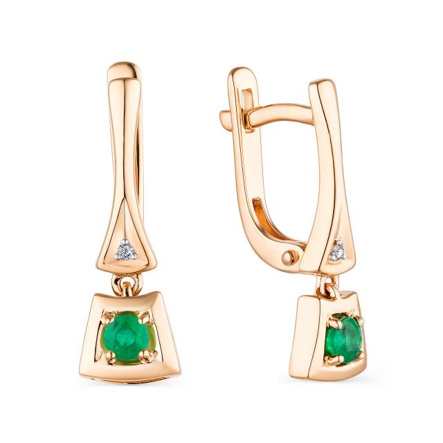 Серьги из красного золота с бриллиантами и изумрудами (043151)
