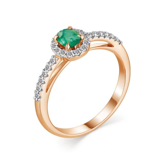 Кольцо из красного золота с бриллиантами и изумрудом (042024)