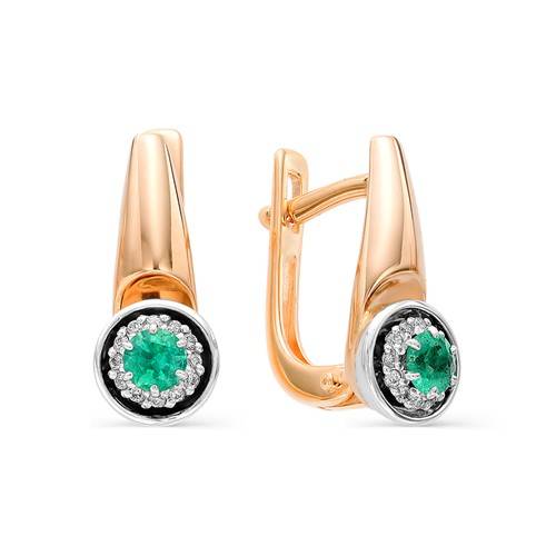 Серьги из красного золота с бриллиантами и изумрудами (050471)