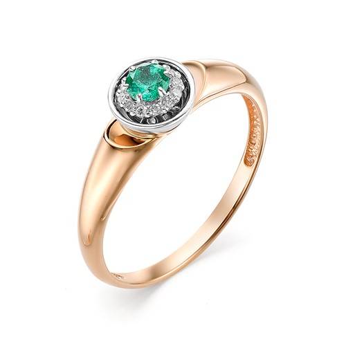 Кольцо из красного золота с бриллиантами и изумрудом (031279)
