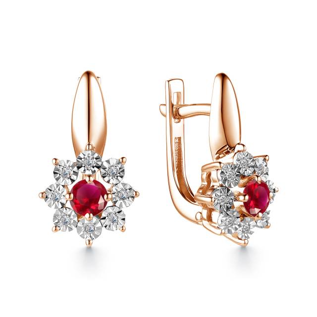 Серьги из красного золота с бриллиантами и рубином (025079)