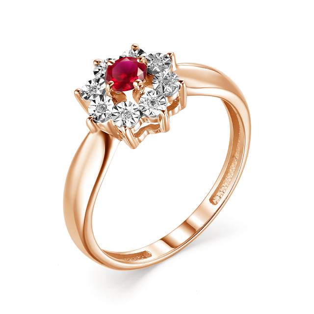 Кольцо из красного золота с бриллиантами и рубином (042018)