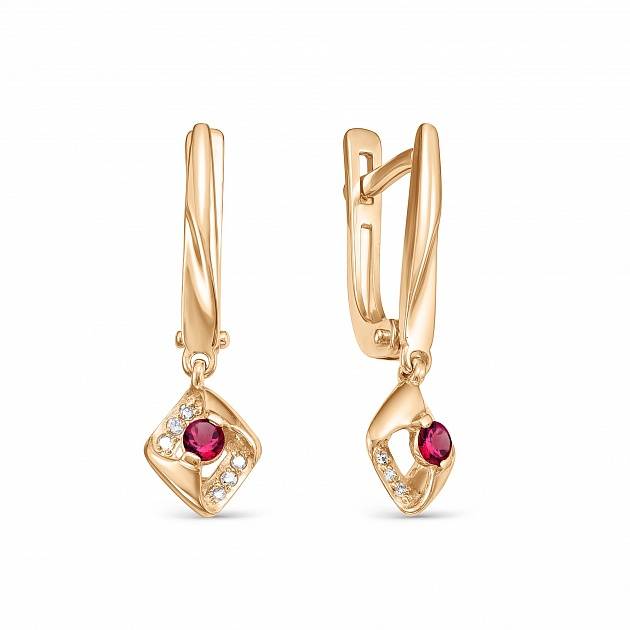 Серьги из красного золота с фианитами (056047)