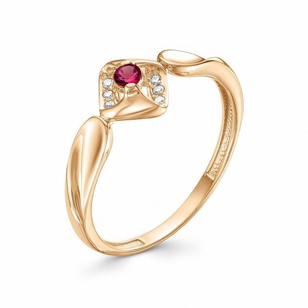 Кольцо из красного золота с бриллиантами и рубином (043121)