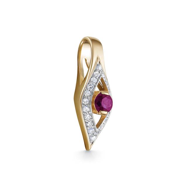 Кулон из красного золота с бриллиантами и рубином (052807)