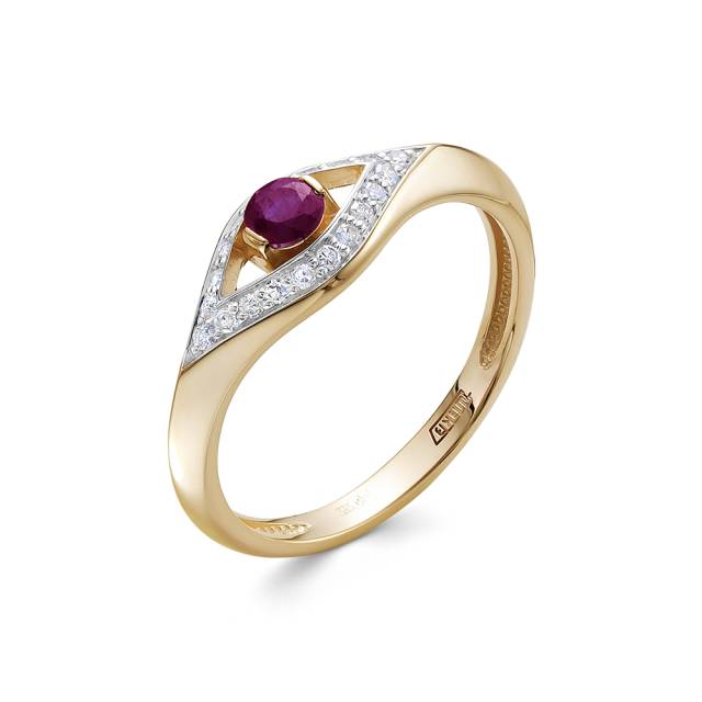 Кольцо из красного золота с бриллиантами и рубином (052855)