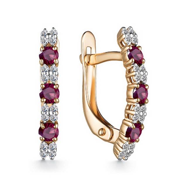 Серьги из красного золота с бриллиантами и рубинами (053708)