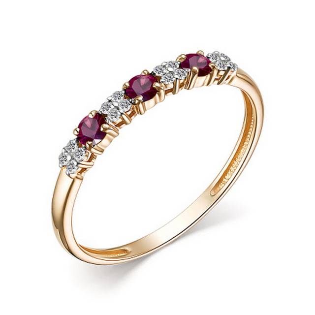 Кольцо из красного золота с бриллиантами и рубинами (053689)
