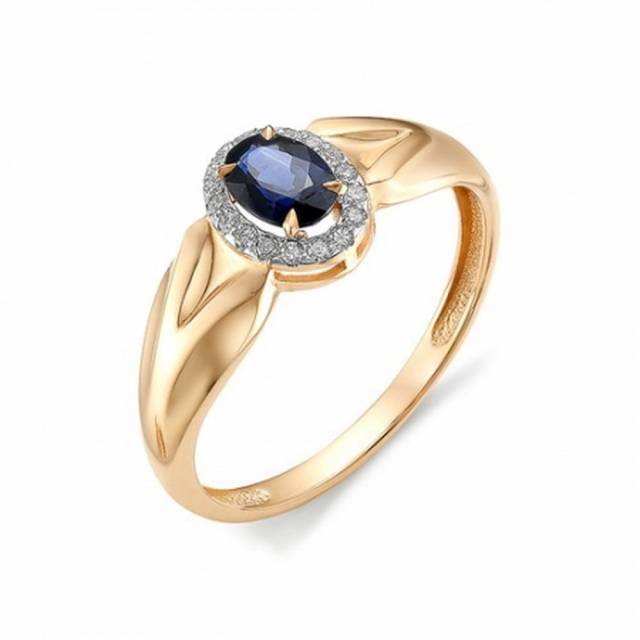 Кольцо из красного золота с бриллиантами и сапфиром (036177)
