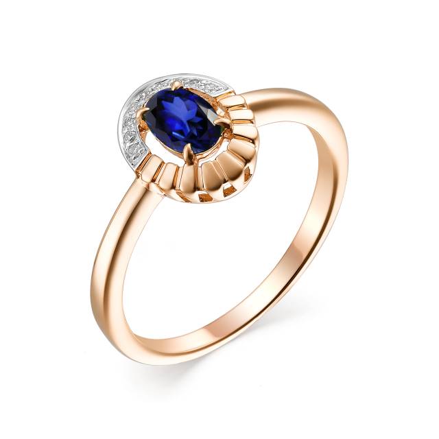 Кольцо из красного золота с бриллиантами и сапфиром (042042)