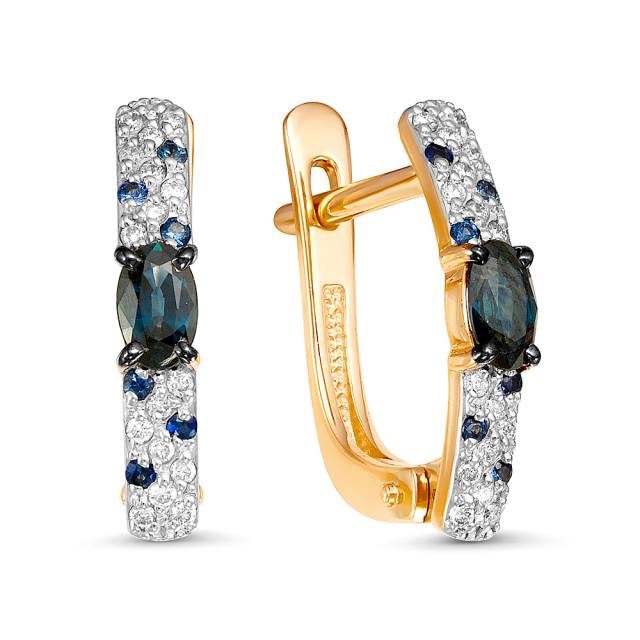 Серьги из красного золота с бриллиантами и сапфирами (050079)