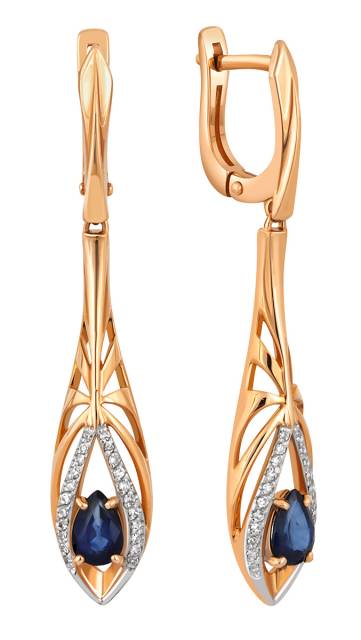 Серьги из красного золота с бриллиантами и сапфирами (050481)