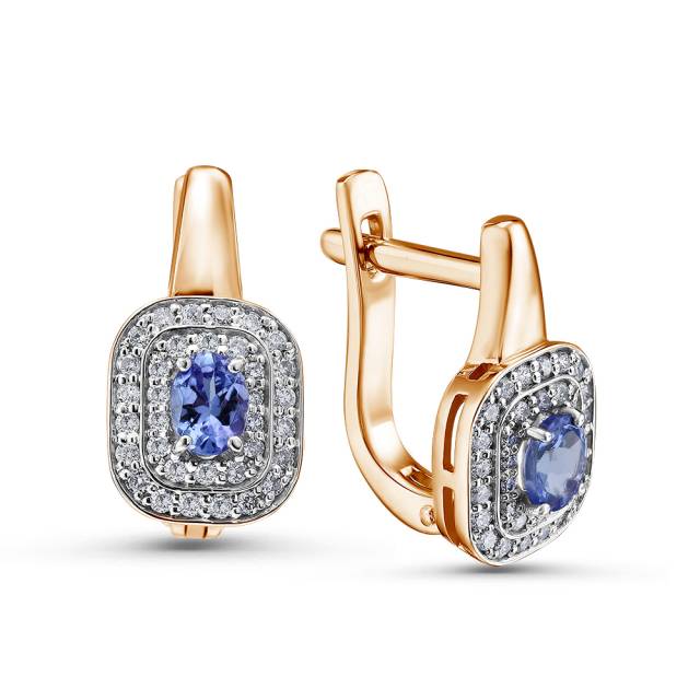 Серьги из красного золота с бриллиантами и танзанитами (051409)