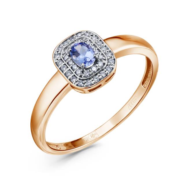 Кольцо из красного золота с бриллиантами и танзанитом (051411)