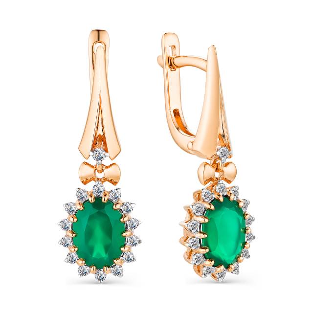 Серьги из красного золота с бриллиантами и зелёным агатом (040476)