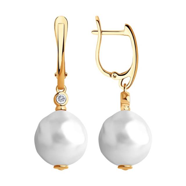 Серьги из красного золота с бриллиантами и жемчугами (045087)