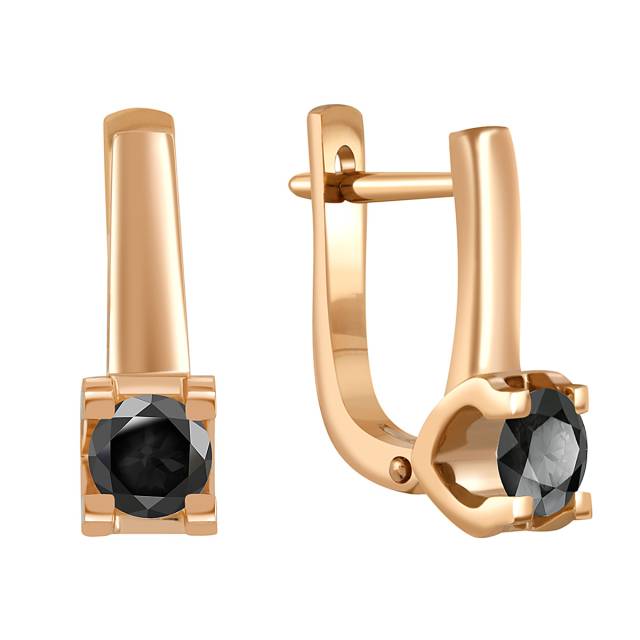 Серьги из красного золота с чёрными бриллиантами (048377)