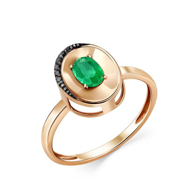 Кольцо из красного золота с чёрными бриллиантами и изумрудом (053000)