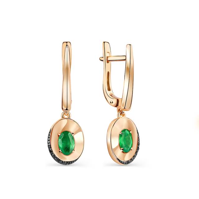Серьги из красного золота с чёрными бриллиантами и изумрудами (052999)