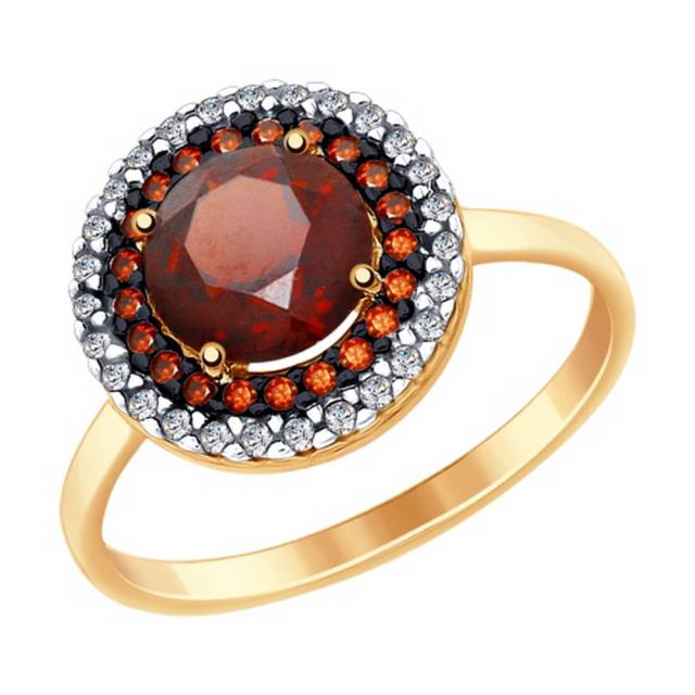 Кольцо из красного золота с гранатом и фианитами (038319)