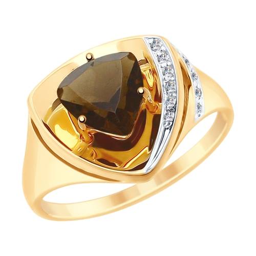 Кольцо из красного золота с раухтопазом и фианитами (038342)