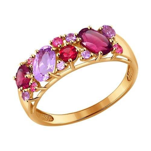 Кольцо из красного золота с родолитами и аметистами (037340)