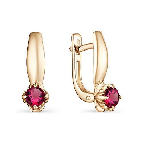 Серьги пусеты из жёлтого золота с цирконами (060538)