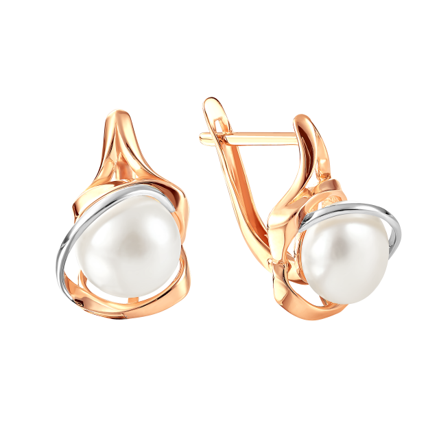 Серьги из красного золота с жемчугом (041480)